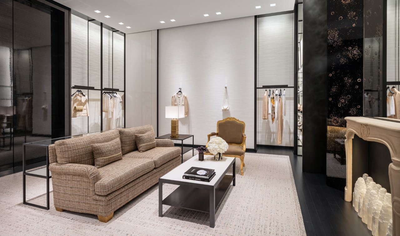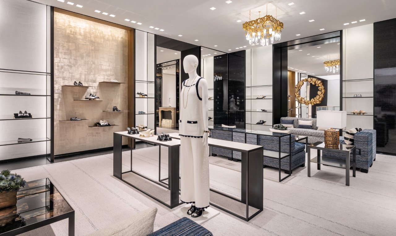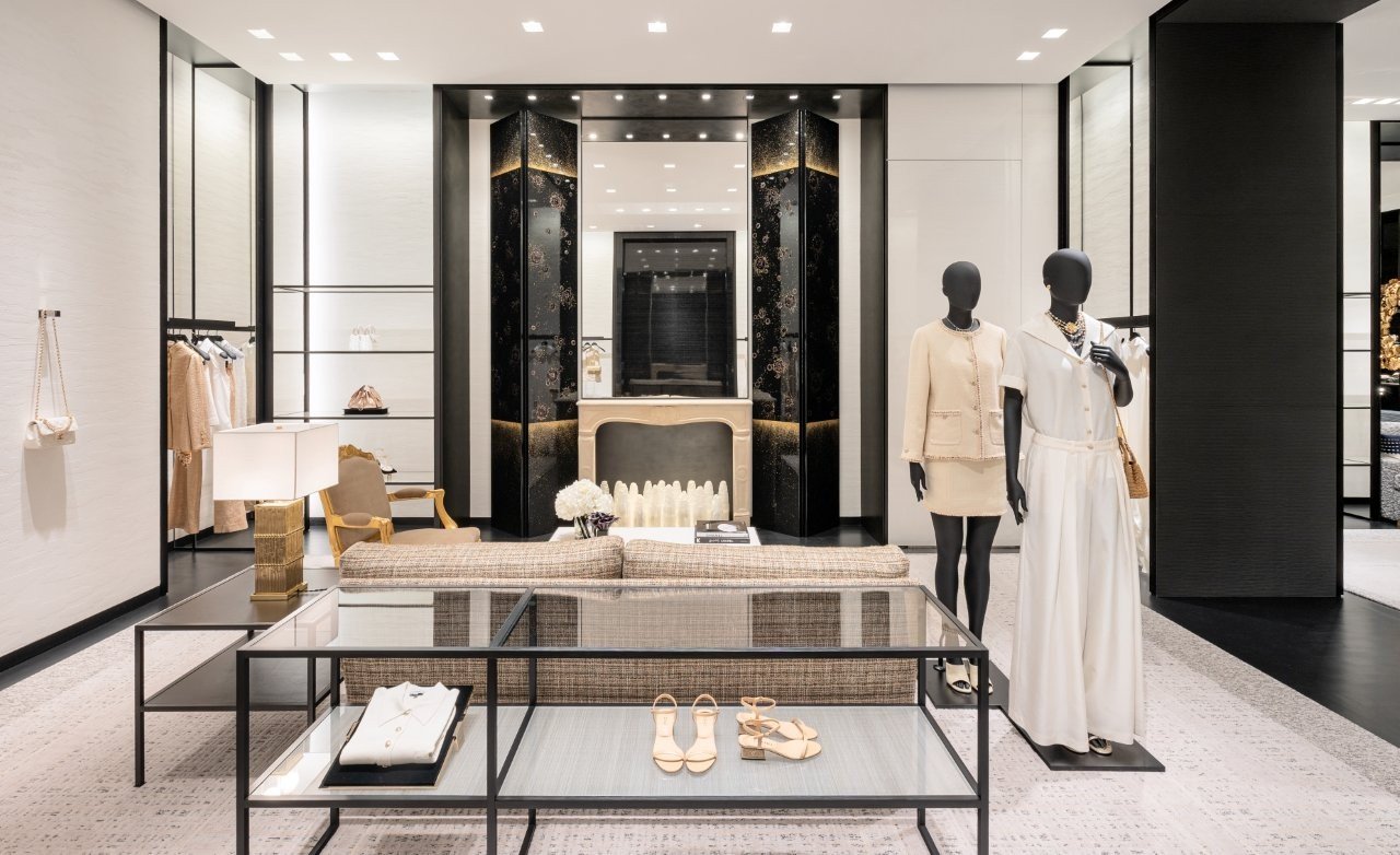 Designed by renowned architect and long-time Chanel collaborator Peter Marino, the new boutique beautifully interprets the aesthetic codes of the House, combining architectural precision with refined artistry. The space pairs Chanel’s emblematic black and white tones with warm gold accents, creating an inviting ambiance that evokes the spirit of a modern yet timeless Parisian townhouse.