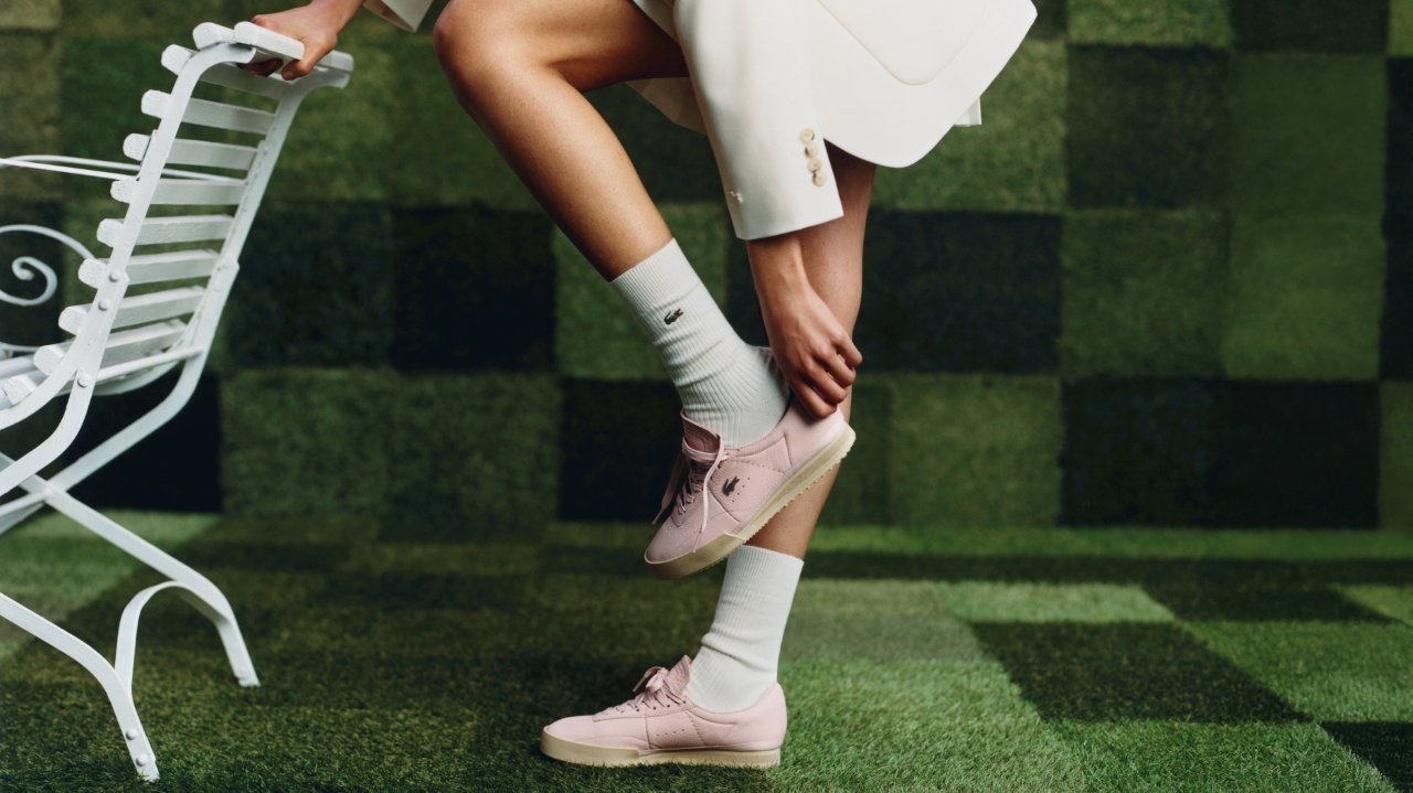 The Lacoste Aura sneaker is built around a low court silhouette, nodding to Lacoste’s tennis legacy and flair for French elegance and inspired by founder René Lacoste’s vision of leisure.