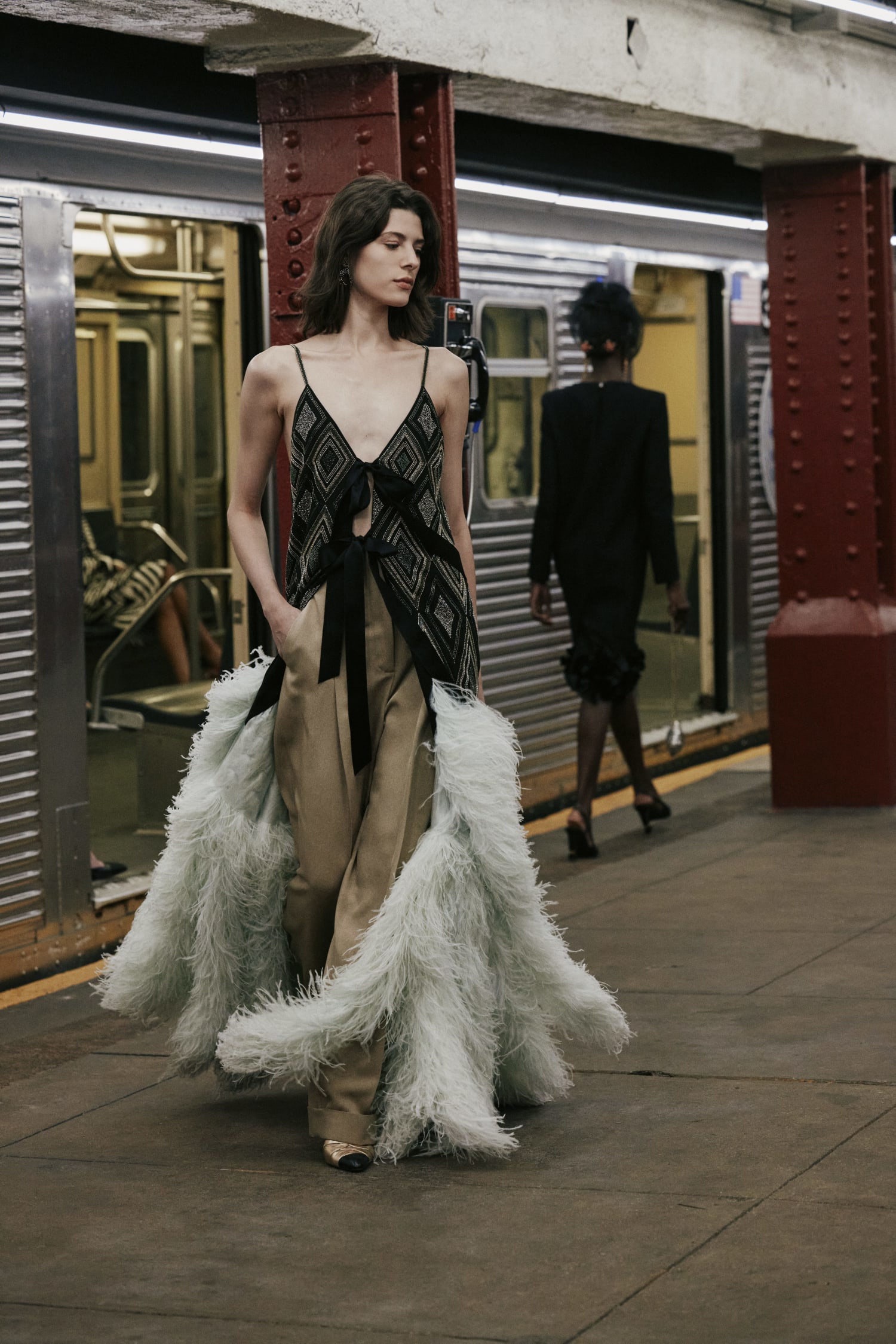 “The New York subway belongs to all. Everyone uses it: there are students and gamechangers; statesmen and teenagers. It is a place full of enigmatic yet wonderful encounters, a clash of pop archetypes, where everyone has somewhere to go and each is unique in what they wear. Like in the movies, they are the heroes of their own stories,” said Matthieu Blazy.