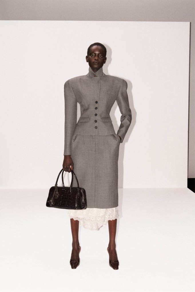 The Magda Butrym Pre-Fall 2026 collection is a refined yet urgent wardrobe that reconsiders elegance as something intuitive, effortless, and assertive. Drawing on a tradition of poised glamour, filtered through a stripped-back 1990s minimalism, the offering balances sharp tailoring with fluid, overscaled silhouettes. Subtle expressions of Slavic heritage surface through meticulous craftsmanship, modern romantic layering, and unexpected twists in accessories, while the house’s rose motif appears in restrained, near-abstract forms.